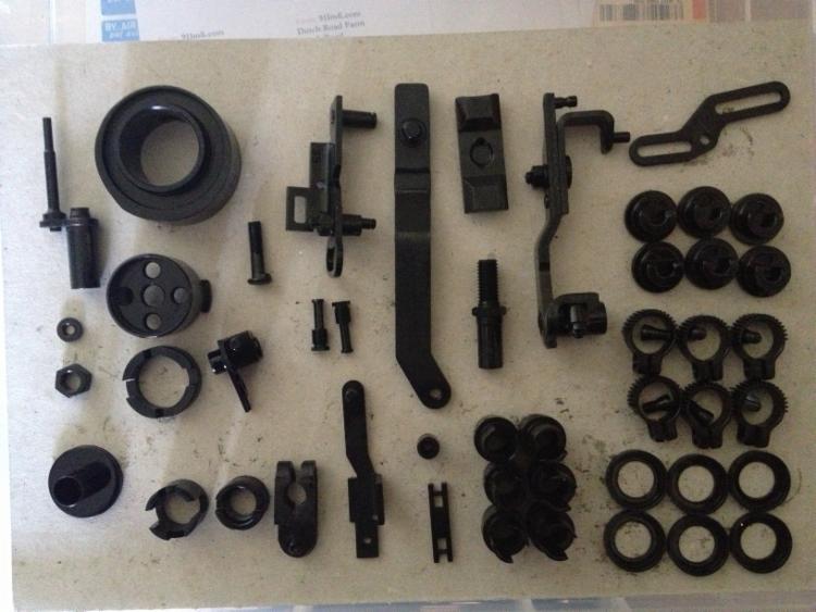 The steel internal parts to your pump are coated to prevent corrosion. this gives the parts a satin black finish without effecting the dimensional clearances of the components. If you want to re-black the internal parts of your pump you can do this at home with the cold dip kit from www.frost.co.uk/coatings/metal-blacking-kits.html The kit is simple to use as it is at room temperature. You simply dip the parts into the three chemicals and watch them turn black. I pre-clean most of the parts in an acid solution in my ultrasound bath first as this gives a better finish but a cleaning chemical is provided. When finished the parts look brand new.