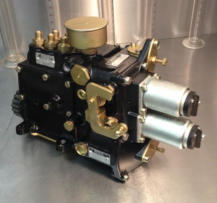 The fittings on the outside of the pump are finished with a yellow Zink electroplated finish. Many plating companies have stopped providing this service as it has been outlawed by the EU for new electrical and automotive parts. Some firms will however still plate the parts to the original specification on request.